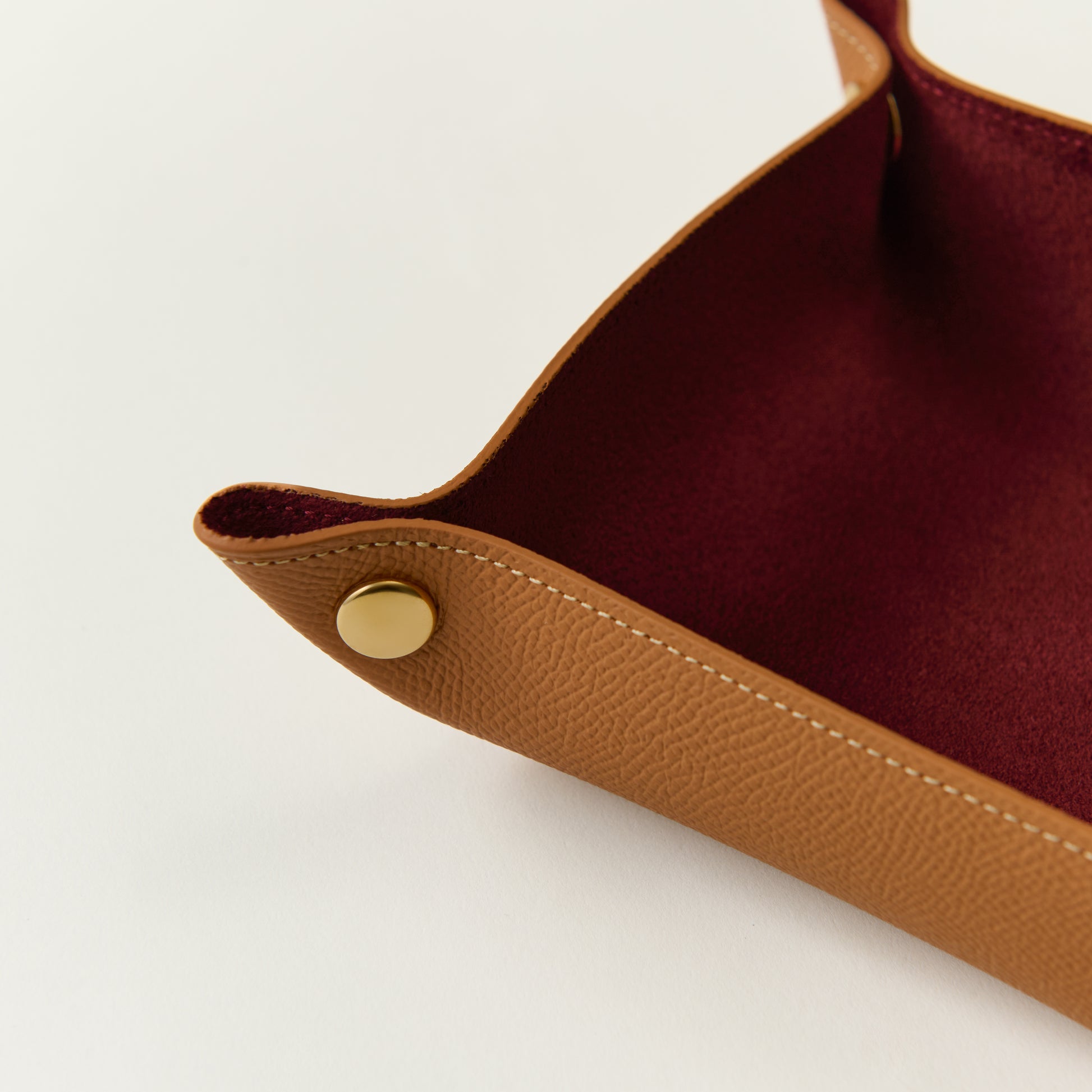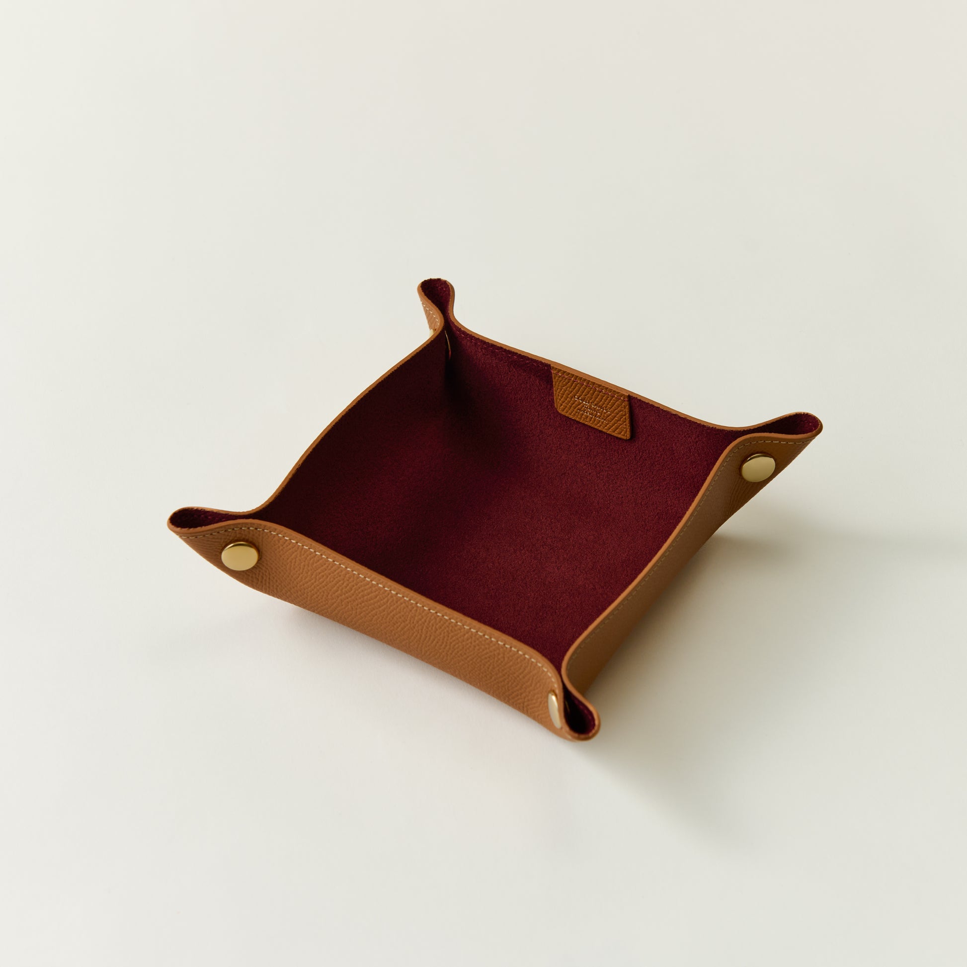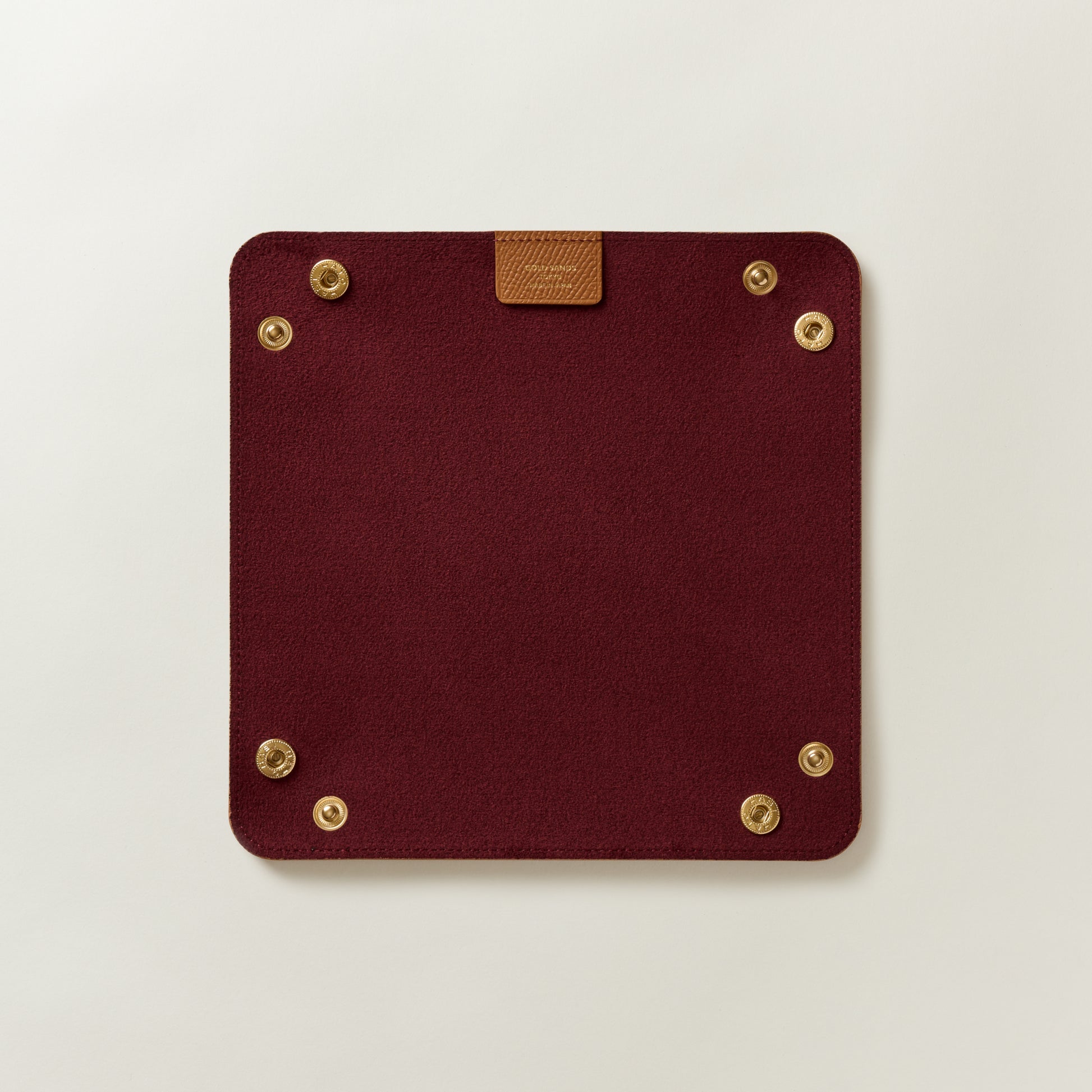 デスクに置いた瞬間の音や滑りを抑える、静かな起毛。ジュエリーや時計を傷つけず、置く動作そのものを穏やかに受け止めます。